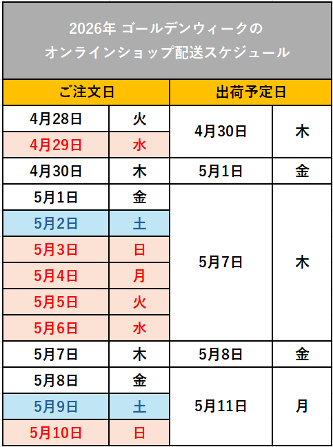 【重要】2026年度ゴールデンウィーク期間配送スケジュールのご案内 2026/04/22(水) お知らせ いつもリブインコンフォートオンラインショップをご愛顧いただき、誠にありがとうございます。 弊社では2 […] 続きを読む