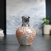 「絶妙なアプリコットカラーにシルバーが渦を巻いているかのようなパターン。リンゴ型も相まってインテリア性が高いです。」
