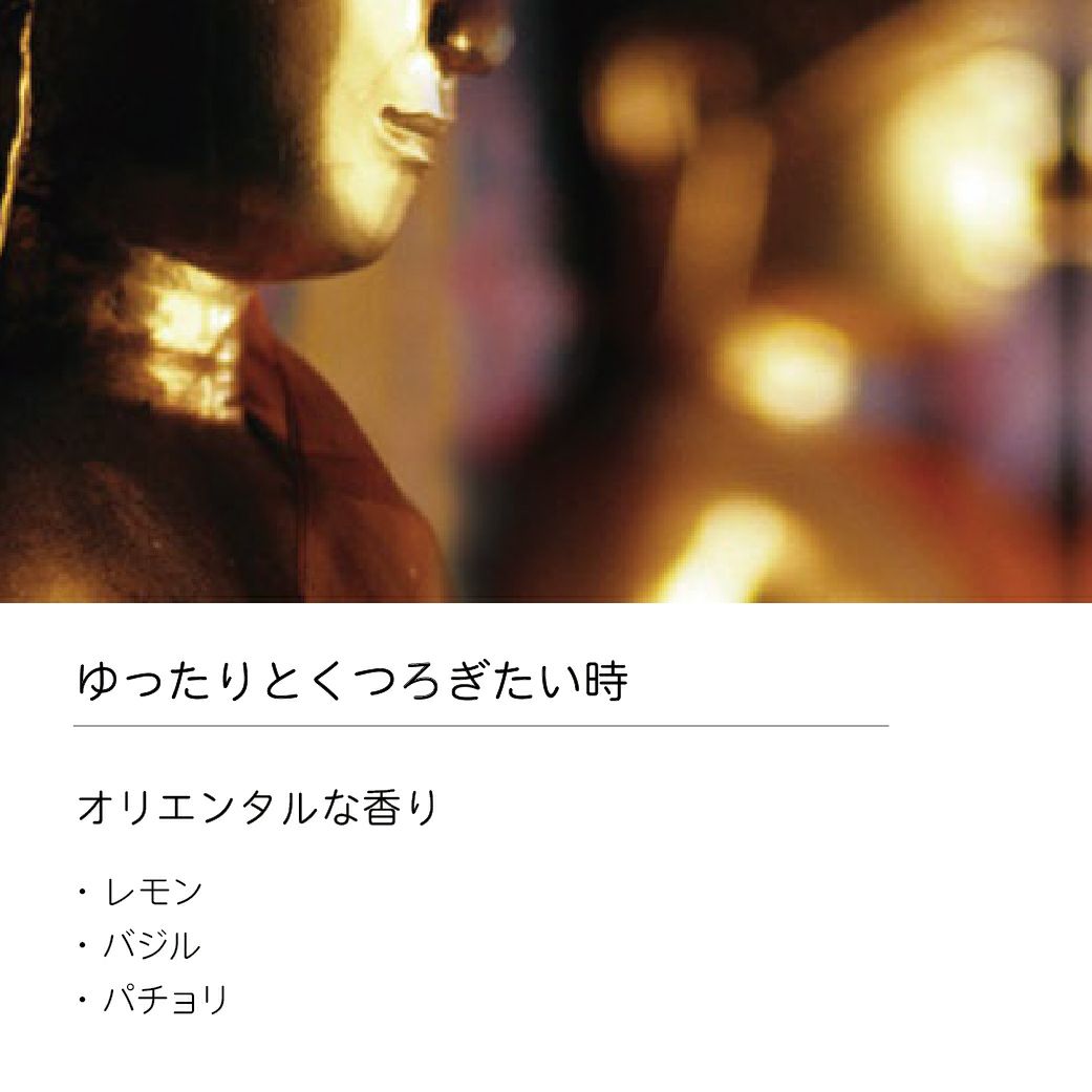 「レモン、バジル、パチョリとムスクがブレンドされた東洋を想わせるオリエンタルな香り」