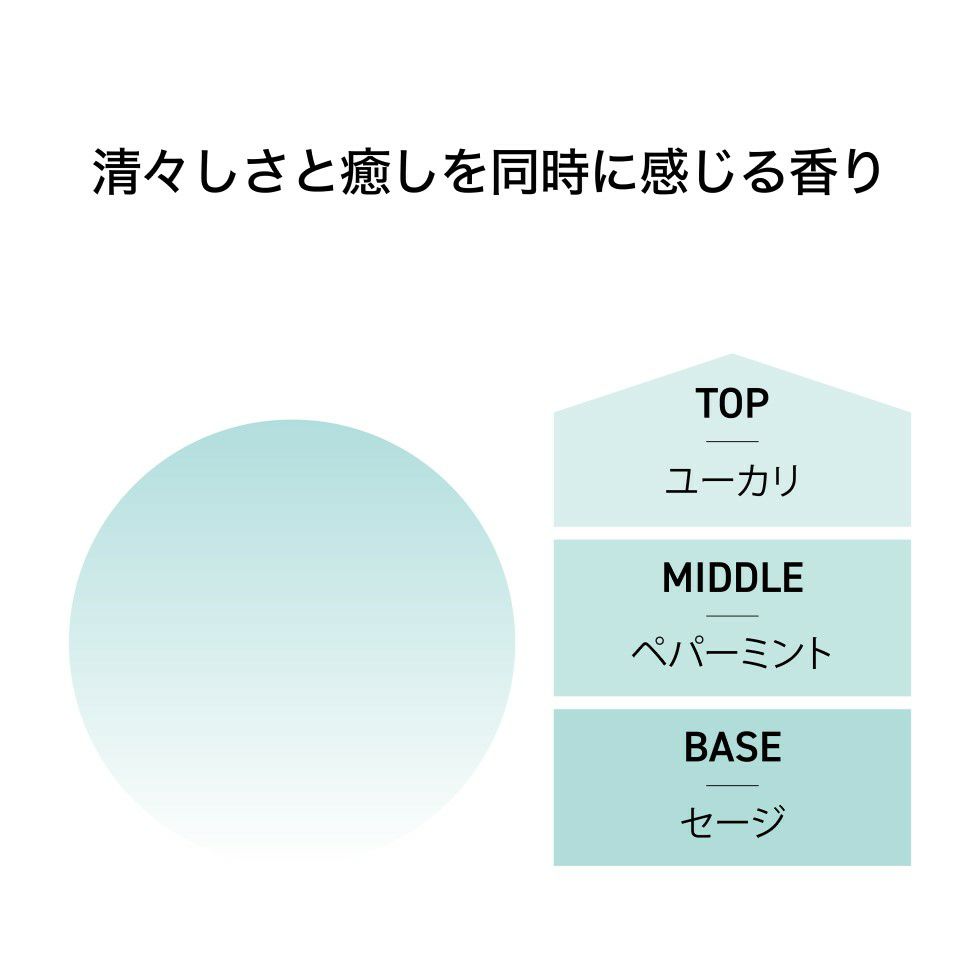 厳選された植物由来100%の心地よい香りは30畳(約56㎡)まで広がります。