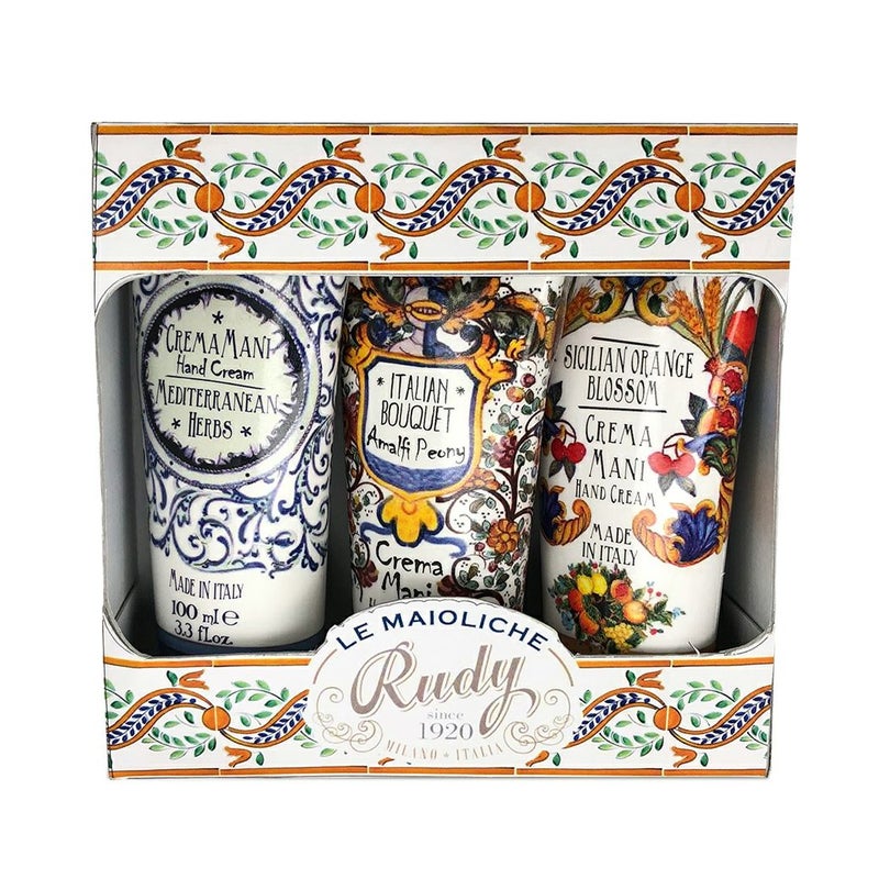 Mediterranean Herbs (メディタラニアンハーブ)・Amalfi Peony (アマルフィピオニー)・Sicilian Orange Blossom (シチリアンオレンジブロッサム)の3種類のハンドクリームセット。